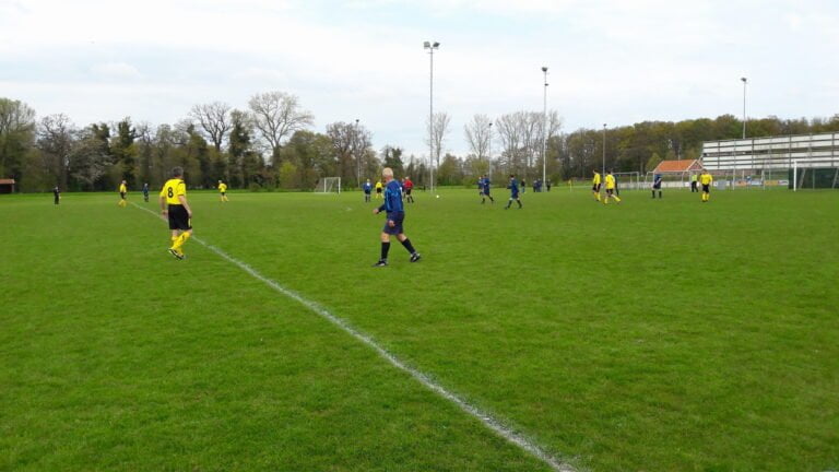 Op de dag van de arbeid moest het tiende naar Miste om Mec 6 te bestrijden. Mec is en blijft toch altijd wat bijzonders, iedereen kent elkaar. Mec dat de doordeweekse inhaalwedstrijd in Vragender tegen KSV 6 had gewonnen, wat een verrassing genoemd mag worden, begon voortvarend. Gelijk de eerste aanval van Mec was het al raak. Een voorzet vanaf de rechterkant word ingekopt en stuit vlak voor frank te winkel op, zodat de altijd gevaarlijke Jeroen Stemerdink van Mec er als de kippen bij is om in te tikken. Trias schrikt, zet even aan ,en een minuut later betekent een lage schuiver van de altijd veel scorende Roy Beskers, de 1-1. Trias blijft nu effe doorgaan en komt 5 minuten later al op voorsprong. Weer is het Roy Beskers die in stelling word gebracht door Gert Hoytink, die het net weet te vinden. Trias blijft vanaf nu de zaken controleren, maar ook Mec is niet ongevaarlijk, zodat de wedstrijd voort kabbeld en de rust in zicht komt met de 1-2 voorsprong voor Trias. In de kleedkamer bedrukte gezichten, en ieder beseft dat er in de 2e helft nog wel wat moet gebeuren voor een positief resultaat. W Wiggers en C Horstink worden vervangen door Harry Piepers en Rudi Beyers. Na zo’n kleine tien minuten is het joost te Selle die Trias op het goede spoor zet. Hij zoekt fraai de ruimte , word goed aangespeeld, en laat zijn tegenstander kansloos, en vervolgens ook de keeper, 1-3. Erik Harmelink blesseerd zich en Jan ten pas valt in. Ook Geert Houwers komt vervolgens binnen de lijnen ten koste van Gert Hoytink. Dan zo rond de twintigste minuut capituleerd Mec definitief. De keeper schiet tegen Roy beskers op zodat Roy vervolgens met een fraaie lob in het lege doel de 1-4 aantekend. Weer een minuut later scoort Roy de 1-5, Frank te Hagen had joost te Selle in stelling gebracht, joost legt mooi breed op Roy, die weer scoort. joost word vervolgens door gelegenheidsspits Gert Klumper vervangen. nadat Edwin Abbink eerst nog op de lat knalt word even later Frank ten Hagen binnen de beruchte lijnen neergelegd. Frank te Winkel schiet de toegekende pingel resoluut binnen 1-6. Ook coach johan Ros wil zich nog laten gelden en komt voor Roy beskers in het veld. Hij is het dan ook , nadat ie de diepte in is gestuurd, die fraai in de lange hoek de keeper voor de zevende keer laat vissen. Mec was in de eerste aanval succesvol, maar in de laatste aanval niet. Frank te Winkel blijft rustig kijken, en zorgt er voor dat het 1-7 blijft. Trias 10 blijft nog in de race.