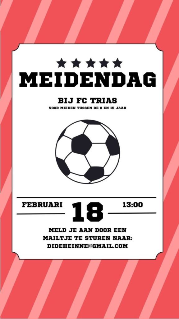 De meidendag duurt van 13.00 uur tot ongeveer 15.30 uur en is voor alle meiden tussen 6 en 15 jaar. De training vindt plaats op de thuisbasis van FC Trias, ’t Huitinkveld aan de Bataafseweg 2a in Winterswijk.