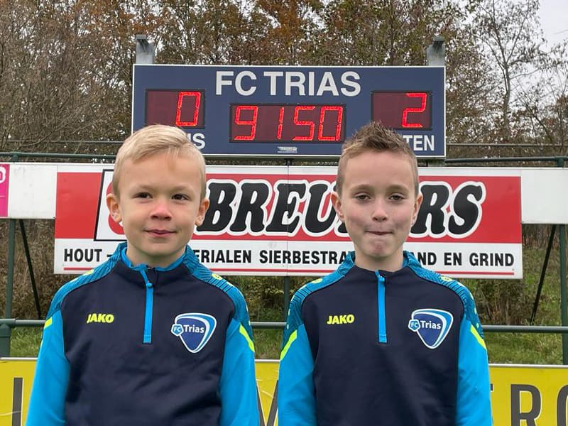 Pupillen van de week Joël Koenders en Ties Lammers van onze JO9-1, scoorden als eerste met ballen beschikbaar gesteld door Corbeel & Greven Natuursteen, Agroservice Winterswijk en Oxener Schoenhandel.
