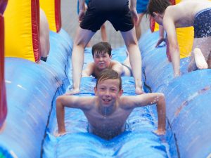 Na een, voor velen korte nacht, en een goed ontbijt werd er gestart met een zeskamp en werd er volop genoten van de buikschuifbaan. Na de middag sloten de JO7 t/m JO11 aan die natuurlijk eerst hun slaap-(of wakkerlig?)plek inrichten. ’s Middags speelden de JO12/JO13 o.a. een voetbaltoernooi, starte de JO10/JO11 met hun zeskamp terwijl de allerjongsten naar Megapret gingen.