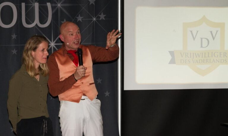 Al op de rode loper werden ze vastgelegd (kijk in in het fotoalbum om de foto’s te bekijken) door Marc Vrolijk. Marc zorgde, ondersteund met vele foto’s, dat ze écht werden voor gewaardeerd voor hun werk. Hij had een leuke act met veel humor met o.a. een grote vrijwilligers kwis die gewonnen werd door Jitske ten Dolle. E.e.a. werd afgewisseld met liedjes waar Marc bij het slotlied werd ondersteunt door het bestuur dat als achtergrond koor optrad.