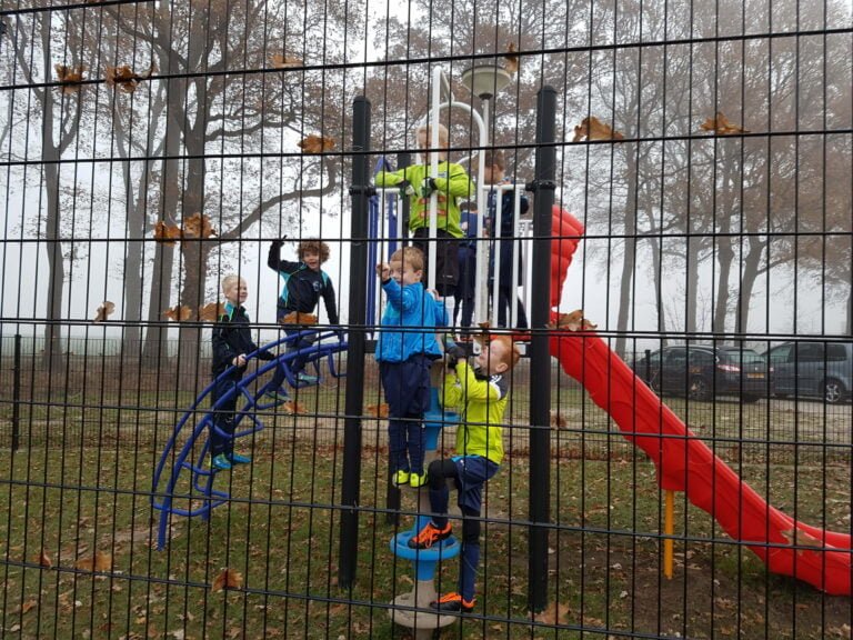 Zo’n tien minuten voor aanvang liepen we dan eindelijk met z’n achten (één ziek, één verhinderd) richting het veld. “Kijk, nu komen we ergens” dacht ik nog hoopvol. Tien seconden later was die hoop weggevaagd, want er bleek een klimtoestel tussen onze kleedkamer en het veld te staan. Ik verdenk DEO er van dat het een bewuste tactiek is om de tegenstander uit te schakelen… Dat lukte overigens aardig! Zo loop je nog richting veld omringd door acht stuiterende jongens, zo loop je ineens met z’n tweeën en blijkt de jeugd en masse het klimtoestel als de ideale warming-up te zien. Aanvoerder Mats voorop… ook gelijk de laatste keer dat die aanvoerder is…