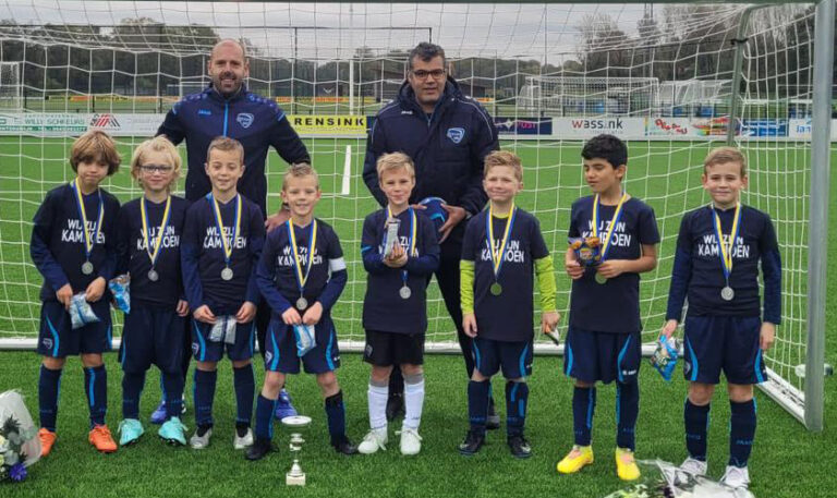 De eerste kampioenen van het seizoen 2023/2024 zijn bekend: Onze JO9-2. Op zaterdag 28 oktober kon het gebeuren. Er werd op het hoofdveld aangetreden tegen FC Winterswijk JO9-3JM. Een groot aantal enthousiaste toeschouwers zorgden voor een geweldige sfeer. Er werd gewonnen en daarmee kon de vlag in top voor dit geweldige team.