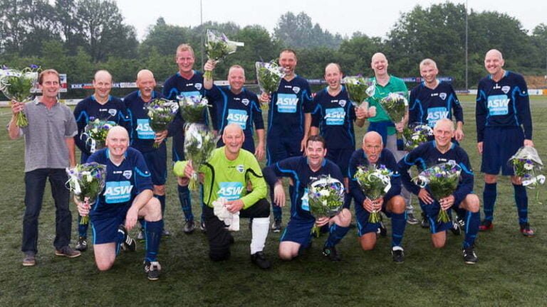 Maar zoals zo vaak was ook nu bij een kampioenswedstrijd iedereen ruim van te voren aanwezig al was alleen al voor het maken van de teamfoto en huldiging. Kortom de coach/leider/speler (& schilder) kon beschikken over een voltallige selectie en daarmee een ruim bemande reservebank.
