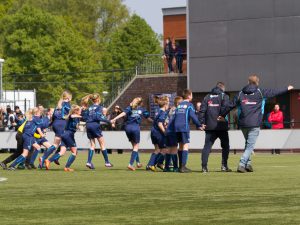 Trias JO12-2G is kampioen! Op zaterdag 11 mei 2019 behaalde de ploeg in de topper tegen VIOD met een 2-1 overwinning het kampioenschap binnen. Het was een prachtig scenario. Op de laatste speeldag: de nummer één tegen de nummer twee. Trias had drie punten voorsprong op de ploeg uit Doetinchem en had aan een gelijkspel voldoende om de titel binnen te slepen. De spanning voorafgaande aan de topper was groot. In de spelers-App vertelden de spelers elkaar hoe zenuwachtig ze waren. En de spanning bleef, tot de laatste minuut.