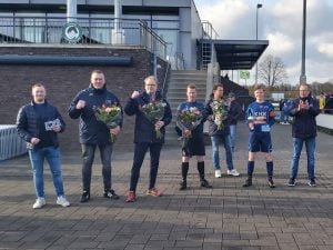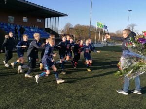 Op zaterdag 5 februari hebben we twee jeugdteams mogen huldigen. Zo eindigde de JO13-1 als eerste in de najaarscompetitie van de 1e klas en dat moest uiteraard gevierd worden. De welverdiende felicitaties gaan uit naar de spelers en speelsters. Zij hadden het kampioenschap echter niet kunnen behalen zonder de bezielende leiding van de trainers Maarten Tiggeloven en Thom Schröer met als vlagger Chris Krabben.