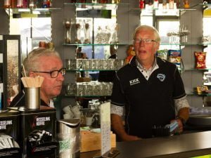 Gerrit Piepers en Domien Gebbink stralen achter de bar van onze kantine: “De vierdaagse is ook voor ons een fantastisch evenement. Iedereen heeft plezier, geniet volop en hierdoor wij natuurlijk ook. Domien en ik openen ’s ochtends bij toerbeurt de kantine. Samen met de andere vrijwilligers die in de kantine staan ontvangen we de deelnemers en voorzien wij ze van een natje en droogje. ’s Ochtends natuurlijk veel koffie maar als de fietsers terugkomen schenken we ook wat anders en hebben velen trek in iets lekkers”, zo legt Gerrit Piepers enthousiast uit.
