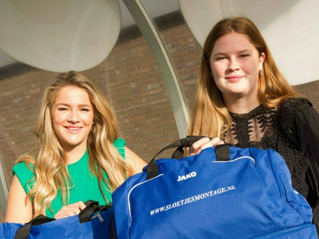 Hij vond Kim (in het dagelijks leven werkzaam bij Verglasco) en Demi (die nog studeert om doktersassistente te worden) bereid om op de foto te gaan. Daarbij toonde zij uiteraard de mooie tassen en schroomden niet om ook nog even met de voltallige selectie van FC Trias 5 op de gevoelige plaat vast te worden gelegd.