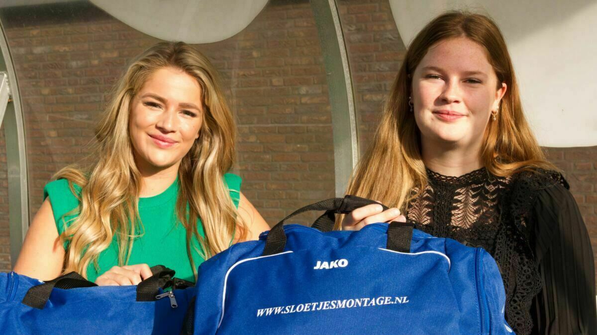Hij vond Kim (in het dagelijks leven werkzaam bij Verglasco) en Demi (die nog studeert om doktersassistente te worden) bereid om op de foto te gaan. Daarbij toonde zij uiteraard de mooie tassen en schroomden niet om ook nog even met de voltallige selectie van FC Trias 5 op de gevoelige plaat vast te worden gelegd.