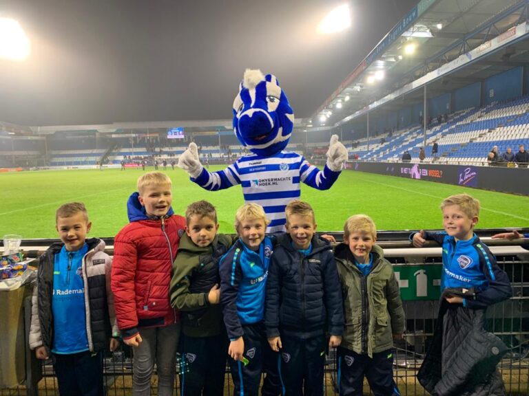 Een paar weken terug hebben de spelers van JO8-1 tijdens een toernooitje daar tien kaartjes van BV De Graafschap gewonnen. Afgelopen vrijdag was het dan zover, de kids en begeleiding vertrokken richting Doetinchem naar stadion de Vijverberg. Aangezien ze mooi op tijd waren konden de kinderen nog even rondkijken. Ze keken zich de ogen uit en wilden alles over de Graafschap weten. Helaas viel de wedstrijd een beetje tegen, maar ondanks dat vonden de kinderen het geweldig (spannend). Ze hebben erg genoten en mochten ook allemaal met de mascotte op de foto. Al met al een onvergetelijke dag.