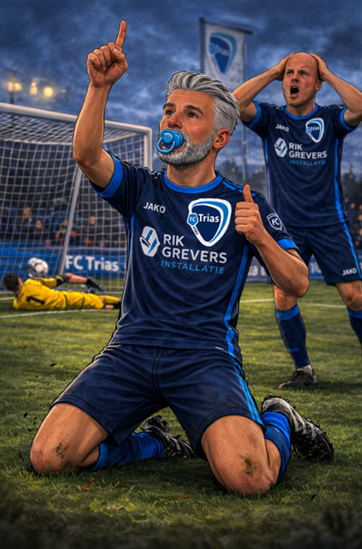 ⚽ 0-2 Niels – Onze rechtsback schoof mee naar voren bij een corner. Normaal gesproken staat hij daar om met zijn lengte ruimte te maken voor Hansie. Maar Hansie zat geblesseerd thuis. Dus stond Niels dit keer zelf precies op de plek van Hansie. De bal viel voor zijn voeten en hij schoof hem beheerst in het hoekje. Geen wilde uithaal, geen paniek rustig in het hoekje, precies zoals hij het normaal níét doet.