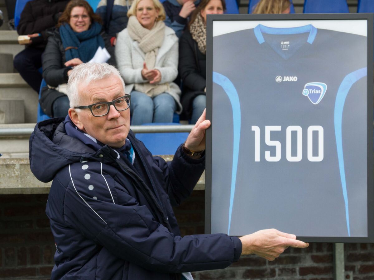 Frank Verheijen coachte op zaterdag 15 april zijn 1.500-ste wedstrijd. Voorafgaand aan het thuisduel van onze O19-1 tegen het Maldense Union JO19-1 werd hij, onder toeziend oog van zijn vrouw en kinderen, door voorzitter Bart Berenschot het zonnetje gezet. Bart had naast mooie woorden een ingelijst shirt voor hem.