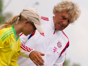 ’s Middags gaf hij een clinic aan onze jeugdkeepers en keeperstrainers. Daarbij gaf hij aandacht aan diverse onderdelen van keepersvak: van het goed vangen van een bal tot en met het positioneren in de goal bij een doelpoging. De 64 jarige Pfaff praatte daarbij gepassioneerd over het keepersvak en had daarbij veel aandacht (en geduld) voor onze jeugdige keepers. Uiteindelijk stond (en praatte) hij bijna twee uur op het veld waarbij hij afsloot door Frans Frielink in het zonnetje te zetten voor zijn bewezen diensten als keeperstrainer van FC Trias.