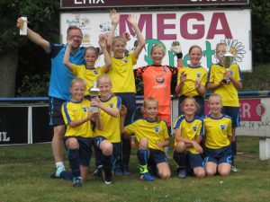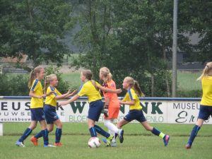 Nadat we wat zenuwachtig op 1-0 achter kwamen speelden we alle schroom van ons af en maakte Benthe 2 doelpunten. In de laatse minuut haalde Manouk Taken nog de bal van de lijn en bleef het dus 2-1 en konden we de 1e prijs in ont