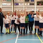 Kon Halle na rust nog een soort Houdini-act uithalen en FC Trias alsnog het kampioenschap ontnemen? Het antwoord op deze vraag was gelukkig nee. Het werd weliswaar niet weer zo’n doelpuntenfestijn als in de eerste helft, maar het spelbeeld was niet veel anders. Het middenveld stond met Micha en Joël garant voor een vangnet voor de uittrappen van de Hallese keepster. Ook al raakte de voorhoede wat vermoeid, achterin stond de verdediging de hele wedstrijd op scherp. Myron wist haar ‘mannetje’ keer op keer van de bal te halen en ook Yentl en Bram stonden als een muur. Complimenten gaan ook uit naar Halle, dat ondanks de schijnbaar uitzichtloze situatie toch de hele wedstrijd verzorgd voetbal heeft proberen te spelen. FC Trias wist nog tweemaal te scoren na rust. Carmen haalde een paar keer goed uit, waardoor de grootste afstand voor de spelers werd overbrugd. Natalia dribbelde de bal scherp de hoek in, om zo keer op keer de bal voor de goal te gooien. Zo wist Britt, na al eerder snoeihard de paal te hebben geraakt, zichzelf nog met een doelpunt te belonen en knalde Semih (ja weer Semih) de eindstand op het scorebord. 7-1.