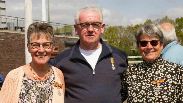 Ook Ineke en Domien Gebbink waren naar met een smoesje naar onze accomodatie gelokt. Daar kregen zij, onder toeziend oog van kinderen, familie en vrienden beide hun welverdiende decoraties opgespeld. Beide zijn jarenlang betrokken bij het jaarlijkse volksfeest van Huppel/Henxel/Dorpbuurt waarbij Ineke als voorzitster alles tot in de puntjes regelde en Domien allerlei hand- en spandienste verleend vooraf, tijdens en na het feest. Daarnaast zijn ze o.a. actief voor de Zonnebloem, De Lichtenvoorde en WFevenementen. Bij FC Trias zijn ze vaak achter de bar te vinden tijdens wedstrijden of bij andere activiteiten zoals de Winterswijkse Fiets4Daagse.