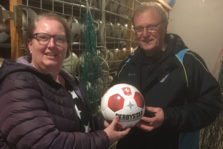 Afgelopen week zijn de 11 ballen door FC Twente afgeleverd en deze werden door Wenke Wullink-Oonk, die vanuit de activiteitencommissie de organisatie op zich had genomen, overhandigd aan Johan Rhebergen. Samen met Wim Huiskamp zorgt hij ervoor dat elk team tijdens de trainingen en wedstrijden over goede ballen beschikt. Deze ballen zijn dan ook een welkome aanvulling.