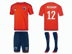 De complete trainingsset, bestaande uit een oranje shirt met logo van FC Trias, een donkerblauwe korte broek en bijpassende sokken, kan voor de gereduceerde prijs van € 30,- bij Sport2000 Leugemors besteld worden.