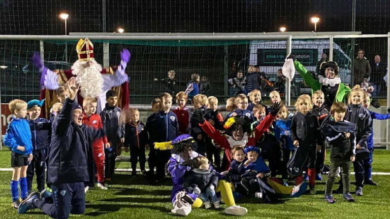 Afgelopen week bracht Sinterklaas een bezoek aan onze jongste jeugd (Ukkies, Minis en JO8). Hij was samen een aantal pieten aanwezig bij hun trainingen. Het werd een geweldige feest waarbij er tijdens de warming-up werd geroeid op de middenstip wat overging in een heuse polonaise. Nadat iedereen warm was geworden werd er afgewerkt op de goal met……. Sint in het doel. Hij bleek, ondanks zijn leeftijd, een heel goede keeper te zijn. De “training” werd afgesloten met een wedstrijd samen met de Sint en zijn pieten. Sint was niet met lege handen gekomen want alle kinderen kregen een mooie voetbalschoenentas met hun naam er op. Dank u wel voor de komst Sinterklaas !