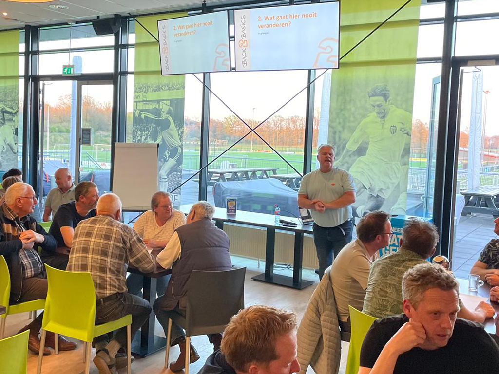 Voorzitter Bart Berenschot legde bij de opening de achtergrond van avond uit die was ontstaan tijdens “een benen op tafel sessie van het bestuur”: met z’n allen nadenken hoe FC Trias er in de (naaste) toekomst uitziet. Daarna nam Marco Groen het als gespreksleider over. Bij z’n intro kwam hij er al snel achter dat de aanwezigen een mooi doorsnede waren van onze vereniging: spelende leden, ouders, jonge maar ook oudere leden, veelal vrijwilligers, waarvan de meesten wel geboren en getogen zijn in Winterswijk waren ingegaan op de uitnodiging. Voor het verdere vervolg liet hij eerst de volgende animatie zien: