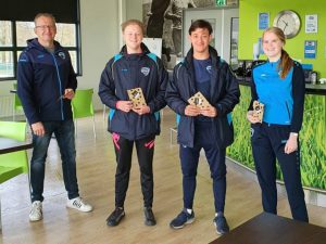 En er is nog meer nieuws aan het trainersfront: Maren de Koning, Jesse de Jong, Luuk Speelberg en Thom Schroer (ontbreekt op de foto) hebben hun diploma jeugdtrainer behaald. Van harte gefeliciteerd! We hopen dat jullie nog lang als trainer verbonden mogen blijven aan FC Trias en dat jullie enthousiasme ook anderen motiveert om de trainerscursus te volgen.