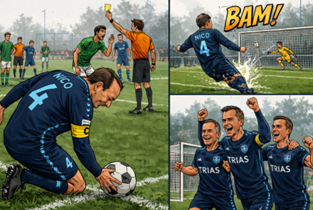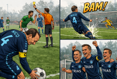 Trias probeerde daarna nog van alles. We gingen meer naar voren spelen, wisselden wat posities en probeerden druk te zetten. Maar het lukte niet echt om een vuist te maken. Zoals dat dan gaat: als je naar voren blijft drukken maar geen doelpunt maakt, laat je achterin ruimte vallen. En precies dat gebeurde. In plaats van de gehoopte 2-2 viel de 1-3.