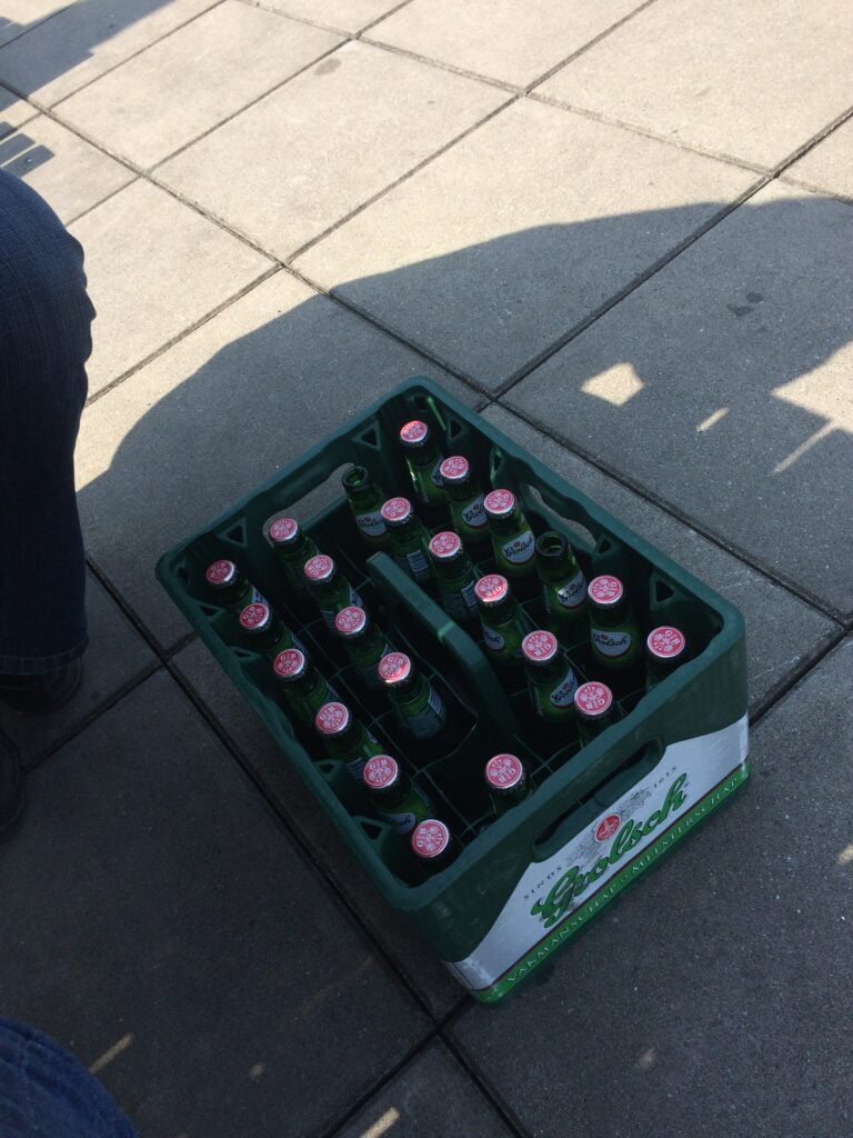 Na de wedstrijd was het meer dan aangenaam vertoeven op de TriasTerras al werd de pret even gedrukt toen het goudkleurige gerstenat uit plastic rommel gedronken moest worden.