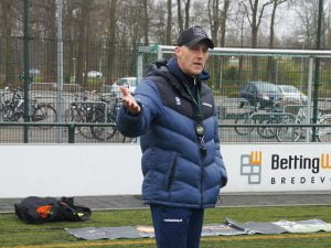 Na afgelopen weken de spanning geleidelijk opgevoerd te hebben was het op zaterdag 10 april 2021 zover: de verrassingstraining van een toptrainer. Deze toptrainer was niemand minder dan Martijn Meerdink (www.martijnmeerdink-voetbalschool.nl), die in het kader van Spieren voor spieren (www.spierenvoorspieren.nl) een voetbalclinic ging geven. Dit dankzij enkele ouders van het team die een winnend bod hiervoor hadden uitgebracht in een veiling.
