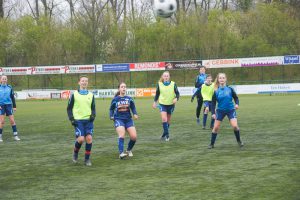 Daarna was het tijd voor een oefening die met pionnen/hoedjes was uitgezet. Hierbij moest iedereen om de hoedjes heen dribbelen, anders werd het opdrukken. Gelijk bij de eerste uitvoering ging het mis en zagen we het hele team netjes naast elkaar 10x opdrukken. Wel blijven luisteren en opletten dus.Dit geldt ook voor de laatste oefening: passen, kaatsen en sprintjes trekken. We zijn afgesloten met een wedstrijdje onder mekaar, waarbij we later dan gepland afsloten, waaruit wel bleek dat het een succes was.