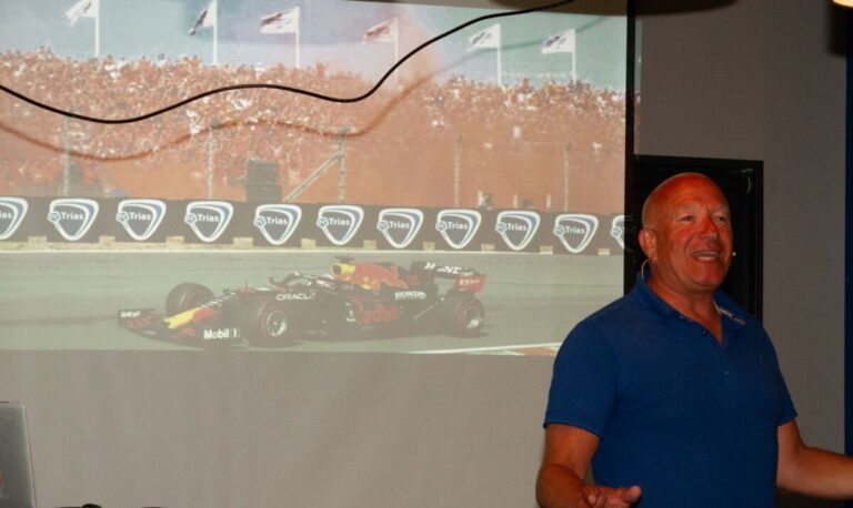 Tim liet zien hoe belangrijk data is in de racewereld. Hoe 90% van een Formule 1-circuit uit rechte stukken bestaat en maar 10% uit bochten. De ideale lijn is de snelste lijn door de bochten van het circuit en dat is de vloeiendste weg van start naar finish. Daarbij telt elk detail en data. “Precies zoals bij ondernemen – of een voetbalclub runnen.” Je moet durven vernieuwen, durven verbeteren, durven gáán. Data is nodig om nog beter te anticiperen op de concurrentie!