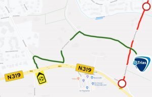 Betekent dat onze accommodatie via de Bataafsweg niet meer te bereiken is. Maar gelukkig is er een omweg gerealiseerd die duidelijk is aangegeven met geel bord met een bal er in: Zo moet men op de N319 afslaan naar de Kottenseweg en direct daarna rechtsaf de B-weg op om vervolgens na 100 meter linksaf de Laan van Napoleon op te rijden. Aan het einde van deze weg steekt men de Bataatseweg over naar ’t Huitinkveld.