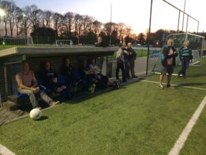 Aan het einde van de wedstrijd heeft zich langs de lijn een elftal verzameld voor de derde helft.